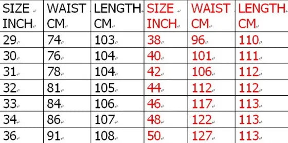 Waist sizes: 29, 30, 31, 32, 33, 34, 36, 38