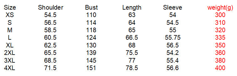 XS, S, M, L, XL, 2XL, 3XL, 4XL