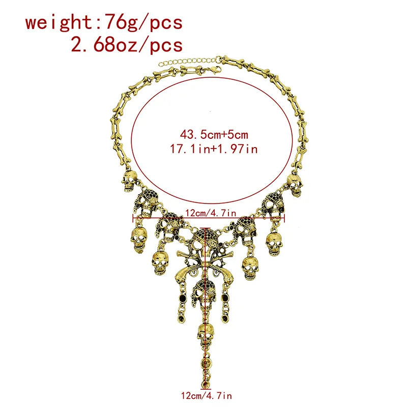 Add a bold, gothic twist to your look with the Vintage Skull Tassel Necklace — a statement piece that perfectly blends punk attitude with retro flair. Designed for those who embrace edgy fashion, this necklace features a detailed skull charm and delicate tassels, all crafted in durable alloy metal. Whether you're accessorizing a Halloween costume or elevating your everyday sweater with some dark glamour, this piece is made to stand out.